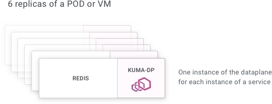 We have one instance of kuma-dp for every instance of every service.